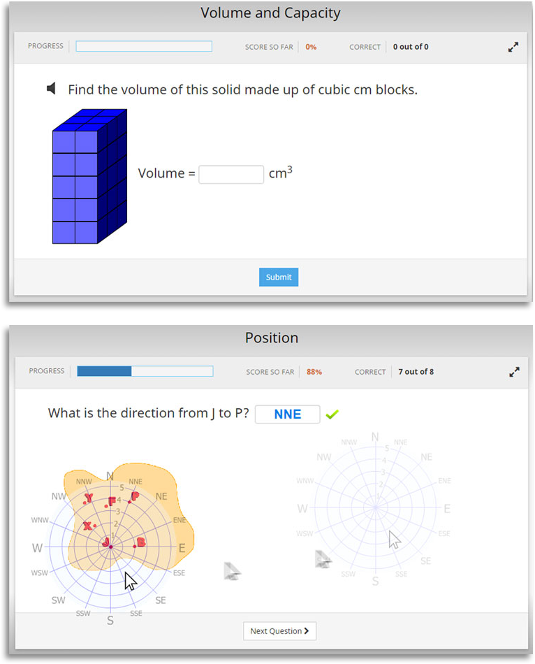 There are different types of activities. Some simply require the answer to be typed in, others are drag and drop and some use on-screen tools you and control and manipulate to help calculate the answer.