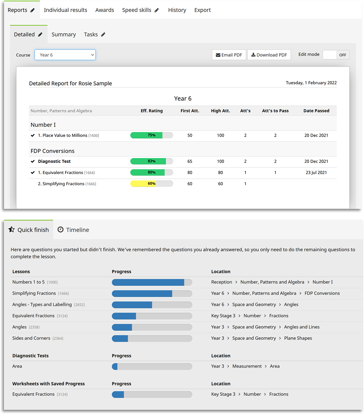 Parents, guardians and teachers can access a full suite of reports and analytical tools through the Parent or Teacher areas.